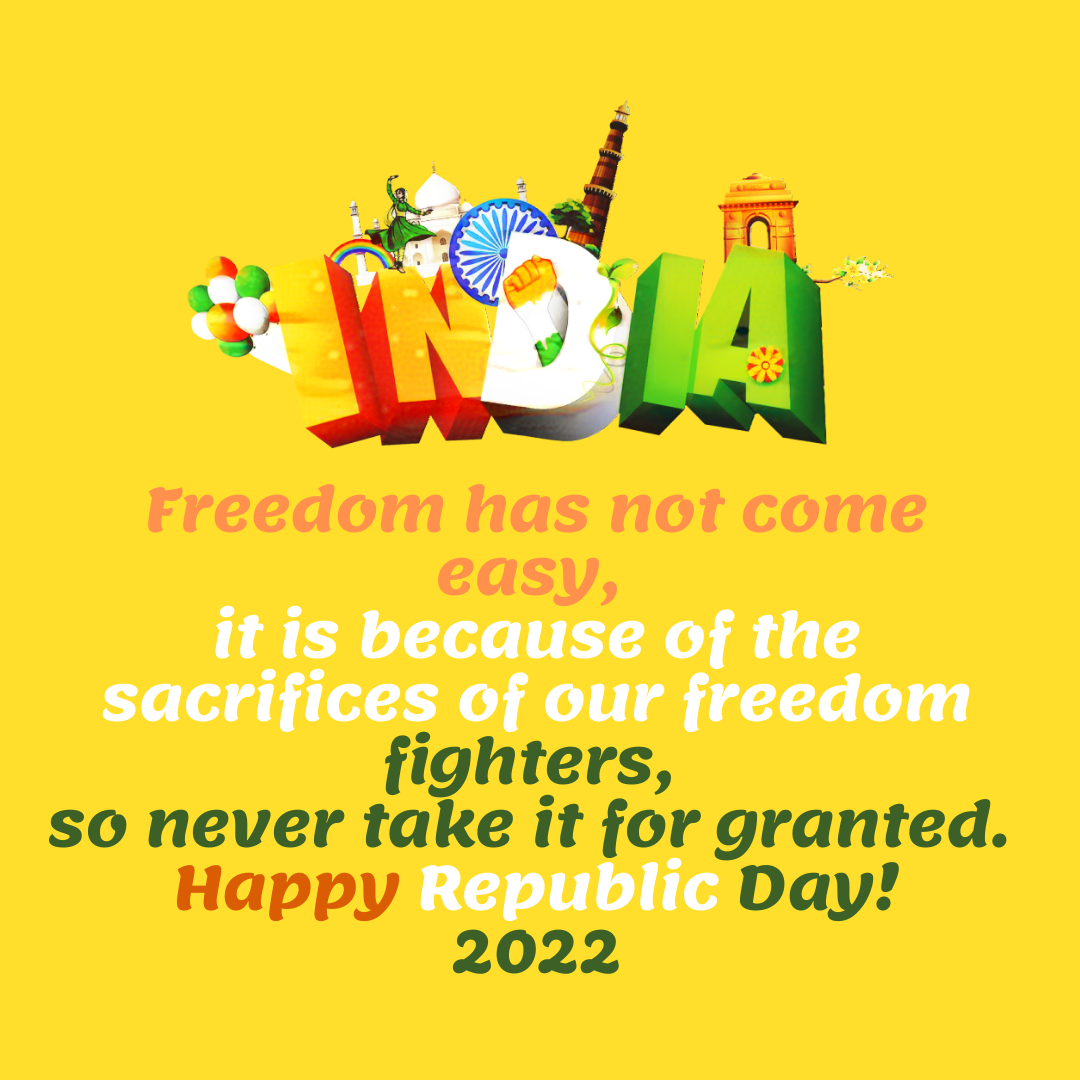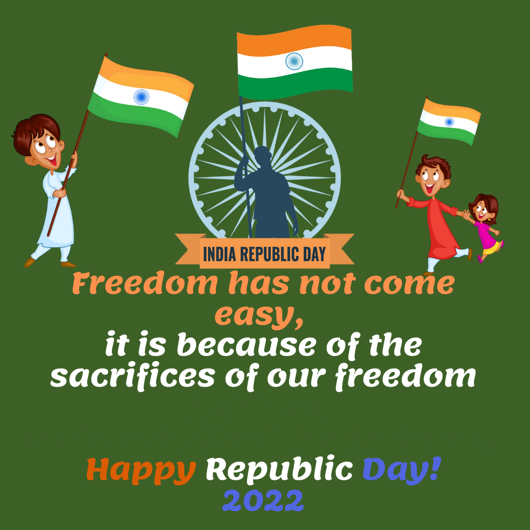 આ 2022 Republic day ના દિવશે આપણું બંધારણ અમલમા આવ્યા ને 26,298 દિવસો,૭૨ વર્ષ અને 864 મહિનાઓ થશે તો તેનું સેલિબ્રેશન પણ ધૂમ ધામ થી થવું જોઈએ તેથી અમે , ૨૬ જાન્યુઆરી ની શુભેછાઓ ના ફોટા લાવ્યા છીએ